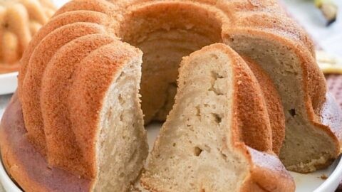 Mehl, eine Prise Salz und Backpulver untermischen und den zähflüssigen Teig in die Form füllen.