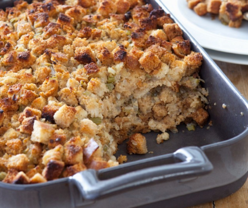 Anschließend die Brotwürfel sowie den Käse dazugeben, gut vermischen und für 30 Minuten kalt stellen.