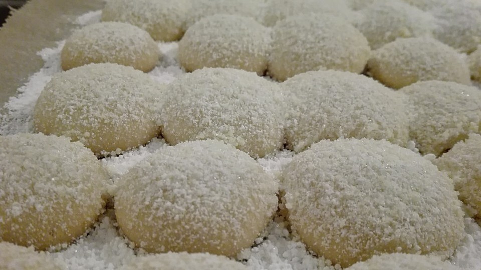 Kugeln noch warm im Zuckergemisch wälzen und erkaltet auch nochmals bestreuen.
