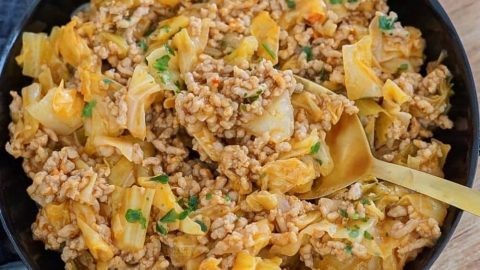 Öl in einer großen Pfanne erhitzen. Hackfleisch darin krümelig braten, Kohl, Tomatenmark und Zucker zufügen und kurz, aber kräftig rösten.