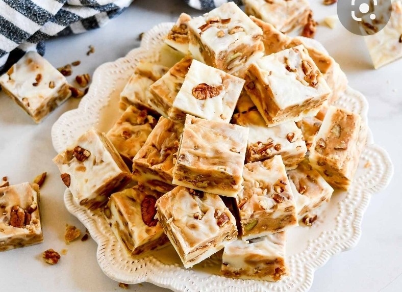 Die Masse in eine 20 x 20 cm große Form geben (oder in eine vergleichbare) und abkühlen lassen, bis sie fest wird. Dann kann man das Fudge in kleine Stücke schneiden. |