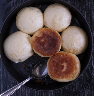 Die Pfanne mit einer Tasse Wasser, Öl und Salz erhitzen.Die dampfnudeln hineinsetzen und bei mittlerer Hitze ca. 30 min. garen, bis die Flüssigkeit vollständig verdampft ist. Dabei darf der Deckel niemals (!) hochgehoben werden, sonst fallen die Dampfnudeln zusammen. |