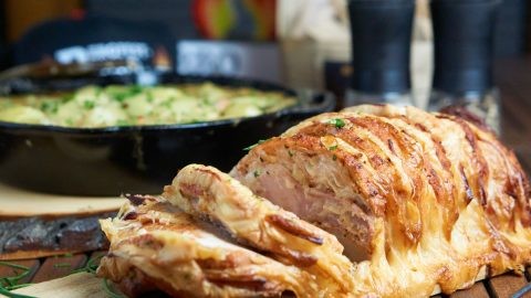 Schweinerücken parieren, in 2 cm Abständen einschneiden (nicht durchschneiden) aber tief und mit BBQ-Mischung ruben