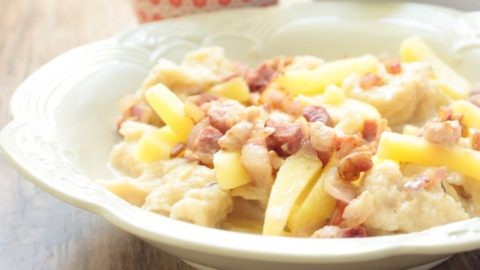 Vom Teig mit einem Esslöffel Teigteile abstechen, in das kochende Wasser geben und 5 Minuten ziehen lassen.