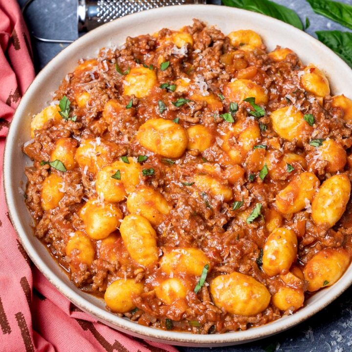 1 EL Öl im Bratfett erhitzen. Hack darin krümelig braten. Lauchzwiebeln und Pilze mitbraten. Mit Salz und Pfeffer würzen. Pesto und Sahne einrühren und aufkochen. Gnocchi unterheben und nochmals abschmecken.
