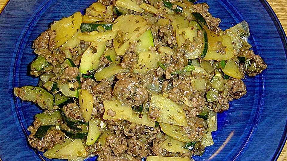 Gemüsewürfel zum Hackfleisch geben und kurz mitbraten. Dann die Pizzatomaten zufügen und erhitzen. Jetzt den Frischkäse zugeben und schmelzen, mit Gewürzen und Kräutern abschmecken. Zuletzt die Mozzarellascheiben auf das Gemüse legen und für ca. 5 Minuten einen Deckel auf die Pfanne legen, so dass der Käse anschmilzt. |