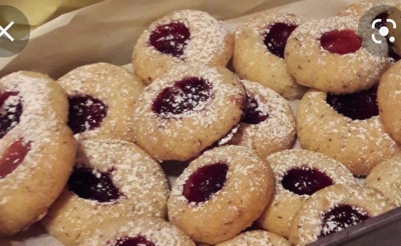 Nach dem Erkalten mit Gelee füllen und dann wird der Puderzucker über die Husarenkrapfen gesiebt.