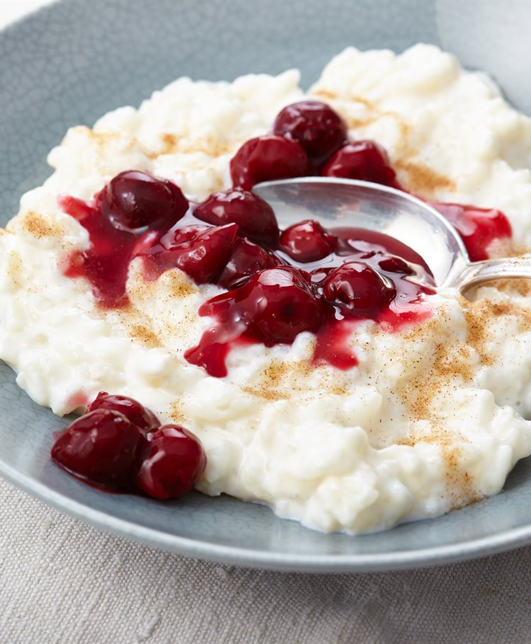 Unter ständigem Rühren den Milchreis etwa 45-50 Minuten bei geringer Hitze offen köcheln lassen, bis die gewünschte Konsistenz erreicht ist.