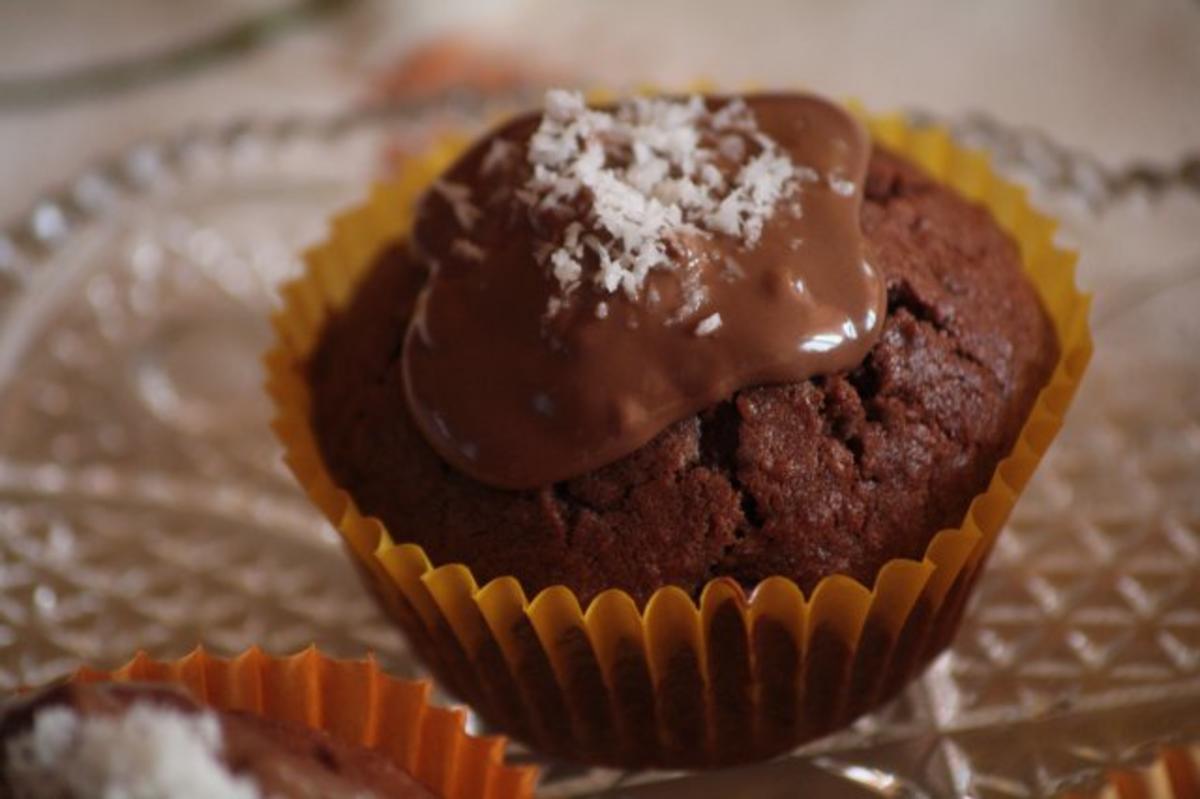 Mehl, Backpulver, Zimt, Kokosraspel, Schokolade und Kakaopulver gut durchmischen. In einer zweiten Schüssel Ei, Zucker, Vanillezucker, Öl und Buttermilch vermengen. Dann die trockenen Zutaten in die Eiermischung geben und mit einem Kochlöffel gut durchmischen, bis es eine homogene Masse ist.