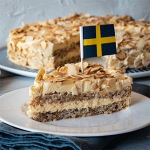 Die Torte rundherum mit den gerösteten Mandeln bestreuen.