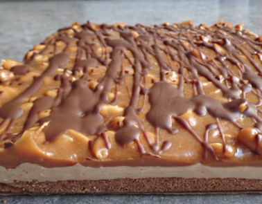 Das Eigelb, die Butter, den Puderzucker, die Sahne und die Schokolade in einen Topf geben und vermischen. Solange erwärmen, bis die Schokolade geschmolzen ist. Die Masse auf den Boden geben und für 2 Std. kalt stellen.